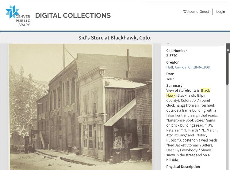 An apology. ![]() I had seen a number of Deadwood images that correlated with the DPL Z-5770, this one in particular. ![]() Steeply sloping street; prior to Brick construction; a large wooden gabled structure at the end; a steeply rising ridge backdrop with a tree in the same place, very similar bowed trunk: I even put the Sid's Store image into Google Lens, and AI told me it was Deadwood haha! That's the 2nd Ai failure for me now. Co-incidentally there is a Deadwood 1879 post-fire image that has 3 partially burned out brick buildings that match the structural details as well and gutted wooden structures eitherside. ![]() And I could not for the life of me, replicate that end of street scene in Black Hawk, I'm focused on matching those stores on Selak St. until I looked harder at the strata in the rocks above, and from under the old viaduct location, matched it to present day Casinotown. So here are your Stores, matching signage and details, the photo having been taken under the future C.C. Viaduct. That external stairway didn't last too long. Denver Public Library Special Collections X-2018 ![]() There was a lesson learned here.