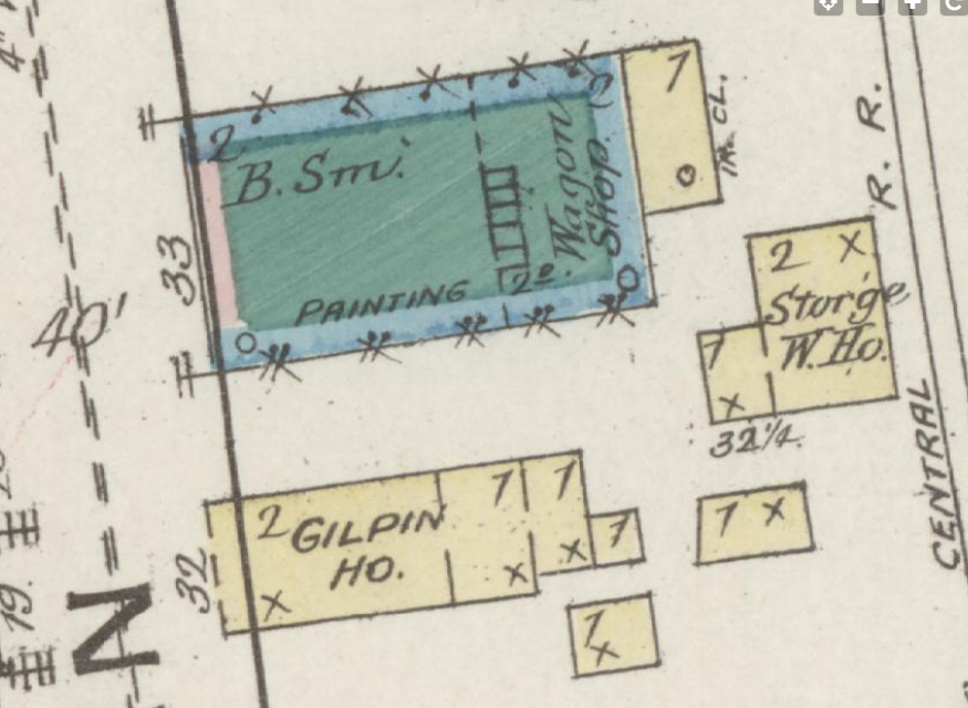 ![]() Area I'm modeling... Black Hawk from Sanborn 1900. ![]() Close up of the "old Gilpin Hotel" which in 1900 WAS a dwelling... ![]() BUT, in 1886... (Sanborn again.)