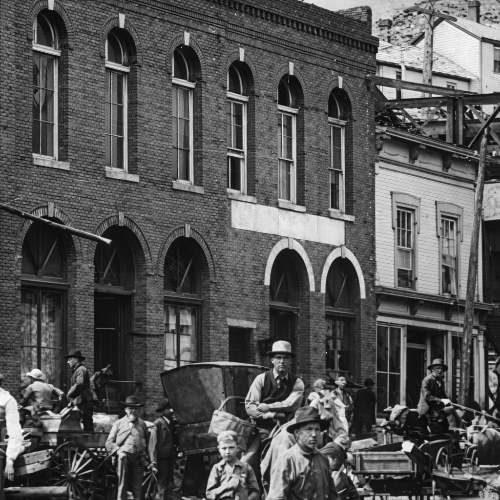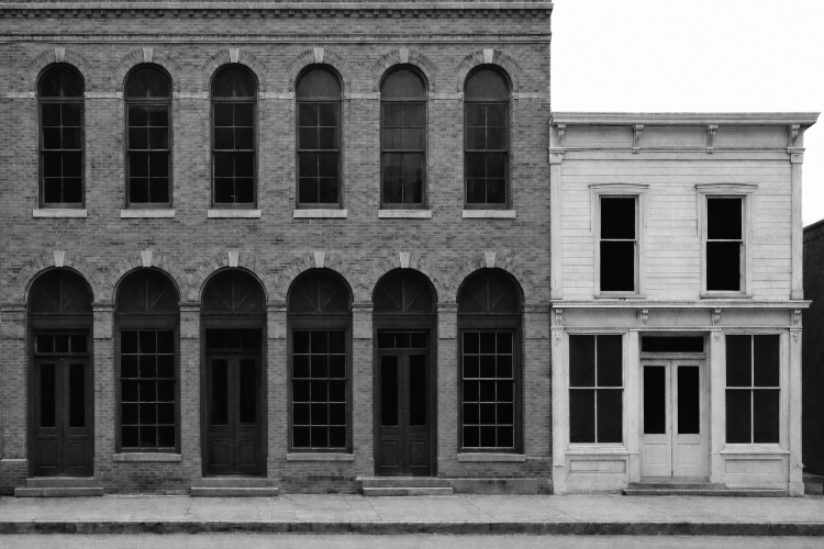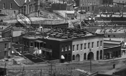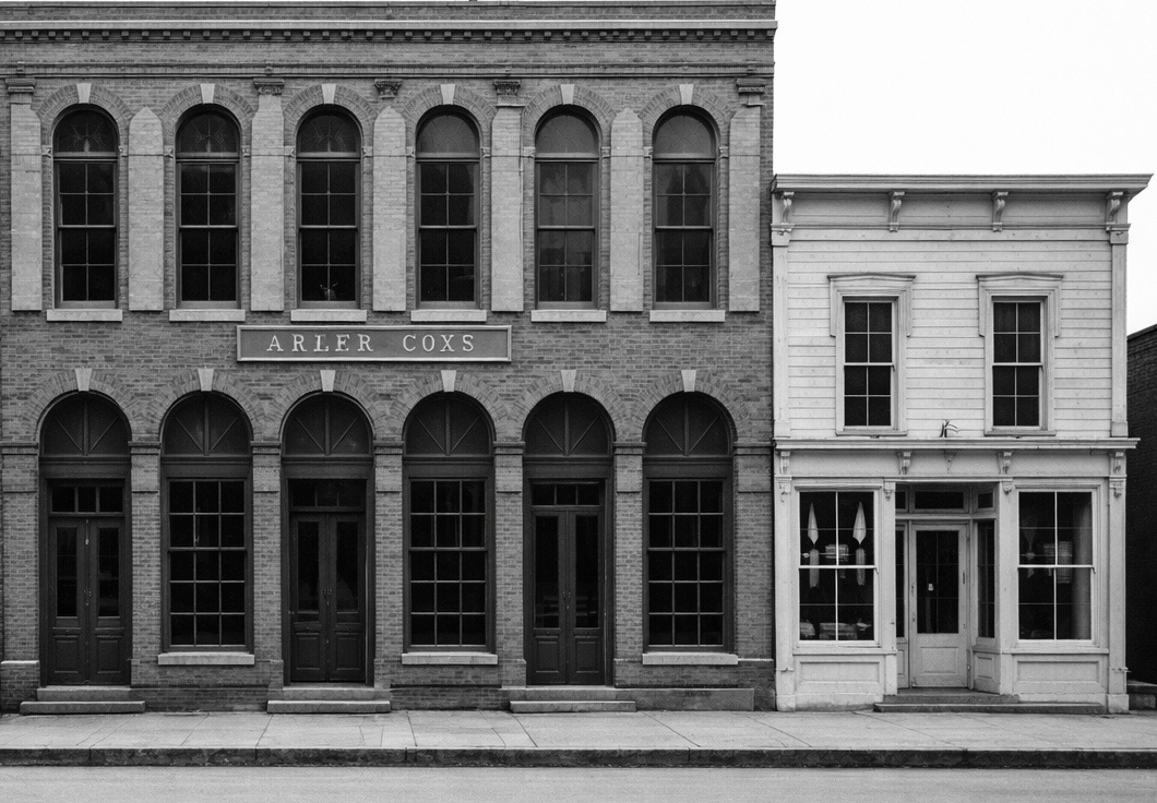 Some additional enhanced historic photos… ![]() ![]() Current street view taken back by AI to the period… ![]() The final AI image isn’t quite right. The window pane arrangement seems off and the arched doorway to the left clearly had double doors, but not too bad…