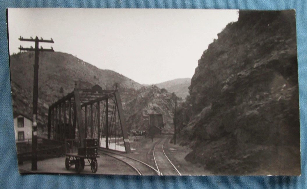 https://www.ebay.com/itm/406132920193?_trkparms=amclksrc%3DITM%26aid%3D777008%26algo%3DPERSONAL.TOPIC%26ao%3D1%26asc%3D20250324083038%26meid%3Dec9d48ebd8154a10a1e8ee249942f649%26pid%3D101952%26rk%3D1%26rkt%3D1%26mehot%3Dnone%26itm%3D406132920193%26pmt%3D0%26noa%3D1%26pg%3D4375194%26algv%3DWatchlistVariantWithMLR_BP&_trksid=p4375194.c101952.m162921&_trkparms=parentrq%3Ab93d90881980a0d592dec40dffffe09e%7Cpageci%3A0878a3ba-7b96-11f0-b2c7-ae40bd5a9d66%7Ciid%3A1%7Cvlpname%3Avlp_homepage ![]() I'm going to guess this is in the late 'teens or early 20s. The baggage wagon is really neat: ![]() I suspect the little wagon was used to transfer baggage / express from the Silver Plume up and down trains to the Blackhawk / Central City mixed train's combine. Note also the safety railing along the walkway on the left side of the iron bridge.