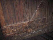 The flaw in my point of view was that I was saying that the walls of the freight room came from Denver, from that building next door to the DRG station. But that would have meant that part of that building had cladding on the inside walls, as used in the office. And part not cladded, as used in the freight room. And that was a flaw in my understanding of things. David was correct in suspecting that the Lechner freight house was used in the Depot. So lets look again. I have pointed out the haphazard manner in which the architraves from the Gilman hotel were used to cover up (?) from the resurrection of the two Denver buildings. The (?) applying to the baggage room. ![]() ![]() This coincides very well with the same standard of work in the freight house room door entrances where what was what looks like doorways just large enough to take a stage coach or round top covered canvas wagon through, altered to become a lower door entrance. A window sash used sideways as part of that alteration. ![]() So I concur with David. I now think that the walls of the freight room were in Lechner already. The end walls of the freight room having to be cut and altered, having a brace put on them to keep them square and strong as the were lifted back up. The floor of the freight room I believe, still a part of the DRG depot. Just note the door with the broken panels out of the top. It has the timber that it was attached to, still hinged on. That door came from here below. The wall between the freight room and the baggage room. ![]() You can see in the photo above that I am suggesting that the Cooley brothers opened up the wall between the freight room and baggage room to bring the door through. So if the timber rail fixed to the wall to the right of the window sash above the broken door in the freight room is at a similar hight to the rail above this door below, we should assume I think safely that this door was moved to the front from the back entrance. ![]() These doors from the front of the depot are little doubt in my mind, two doors that have been spliced together. One slightly higher than the other so that the rails slide past each other. ![]() So maybe these doors came from the original doors of the livery, stables or coach house whatever you may wish to call it and they were cut down in hight and spliced together to make a door to suit the wider opening. A question mark would hang over the timeline of this events. However, if the length of bibs, the horizontal pieces in the door are half the width of the door opening in the back wall, then I think we would have it. So the remainder of the former Lechner 'freight station'? What if the Building thought to be the Ice House was part of that? As can be seen over the top of the depot. It had an air ventilation housing on the roof. An animal house may have that but you would not put that on an ice house where you are trying to restrict air flow. And David, over the years you have mentioned three ideas that I recall why there was multi layers of floor under the boxcar wall! The back of the depot was dropping so new layers of flooring had to be added. The roof leaked and the floor rotted. The guys in the office wore hob nail boots and wore the floor away. No, No and No. How about this. The floor of the office was already rooted by the time it was put back together in Como? I have pointed out the floor joists in the baggage room that came from the office building before. But I did not point out to readers that that floor had to be packed up nearly two inches to meet the level of the other floor. ![]() ![]() The packing up of the floor in the baggage room, the shorter floor joists, the way the room was joined to the freight room, these were things that completely threw Mt Pershbacher. I read his report. He could not explain! So after reading that Como was Lechner, and there was an establishment here dealing with stage and freight, I am very content to believe that the freight house walls came from that building. In the end, and at the moment I do not know the arrangement of the floor underneath the entire office, namely what you call the first extension, but in the end the length of the amount of floor area from that second building in Denver would have to be shorter than the floor area of the DRG station, otherwise the building would have showed up protruding beyond the station building. ![]()