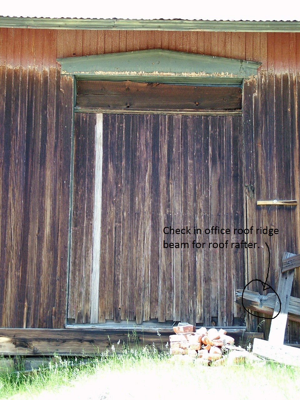Few points about the office/waiting room wall Chris. They are a great example of two half walls being joined together. Panelling cut back to one, join the walls together and two, build in a support for the chimney. With patches over patches. Also it shows on the waiting room side, the rains that poured down the wall. Reason why the double panelling appears on the other side. Water washing the dirt out between the joins. Would not be surprised in fact if it was clap board behind. So dirt, dust and mud would collect at that point where the two layers of panels met hard against each other. And all this we are wanted to believe, all happened to a new building in the space of four years. Go figure. ![]() This photo above shows; the double clad lining in the half wall from a different angle, the patched in door opening in the far wall, the join in the north wall marked AA, and below that the hole in the floor for a sling to come down to drag the depot away from the hotel window, the little heater below the hole in the wall for the chimney pipe. But more likely looking at it, just the flue pipe only. And Chris, this is a great photo showing the ceiling, with the ceiling joists running in the opposite direction to what the roof trusses do. When really they should be running in the opposite direction, to stop the rafters from spreading apart at the bottom. That is why you see a new roof over the office in the 1883 photo. Normally, the ceiling joists would be running in the direction of those in the freight room. as below.