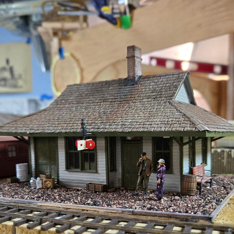 ![]() Kokomo now has a scenic base and a train order board. I realize the real location didn't have an active agent or an order board during the period I model, but I thought it might add some operational interest. The order board is a Grandt part which, with some careful drilling can be made to rotate. I added a leg in the vertical rod which may allow me to operate the signal with a switch master at a future date.