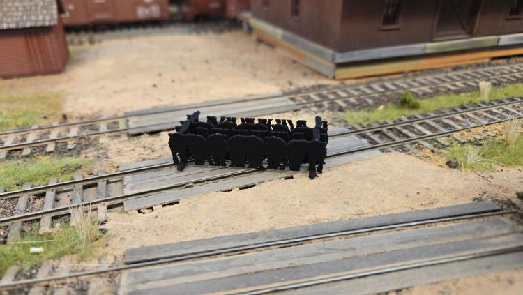 A brilliant idea--if I do say so myself--is flat sheep. These are a silhouette of the animals to create the appearance of a loaded car, and without the weight or cost of 3-dimensional model sheep.