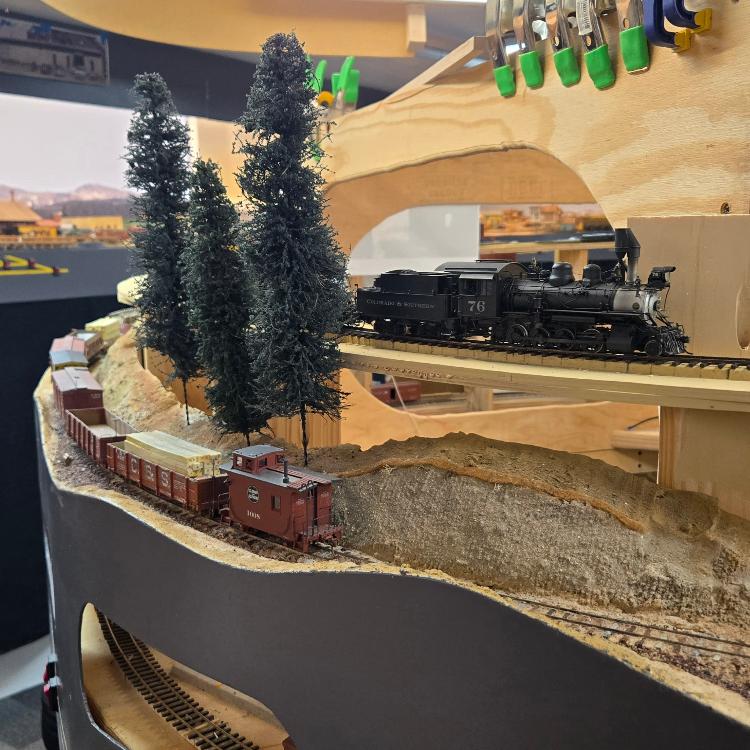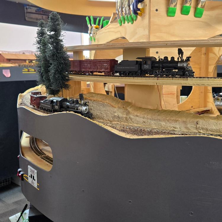 I am really, really working on my layout hygiene. I visited a fabrication shop a while back and saw that they had tools and materials in boxes and bins and all were clearly labeled. I don't know about others, but I worked out of bankers boxes for YEARS. I had models, parts, paint and tools stashed all over the place. When I would encounter a problem, or need to find my grab irons or an NBW or some 40 mil styrene, I would have to tear apart all the boxes to find the part or piece, and that takes time away from advancing the construction of the model. Plus it would be frustrating trying to remember which box I had stashed whatever in. ![]() So...I started to invest in organization! I bought little plastic organizing trays--I have one for just NBWs, one for trucks, one for couplers. I bought the wheeled ELFA carts, and I have one tray with just track laying materials. One has tools, and one tray has sanding blocks. Two towers have scenery materials. I have one tray with dividers for strip styrene, sorted by size, and another for strip basswood. The Container Store has these on sale in January, so I always pick up a couple. During an ops session, they double as a wheeled conductors desk. Now, when I need a part, or a piece of .030 styrene, I go right to the container or the tray, get the material I need and, presto / bingo, I am back modelling! ![]() Long story short, you will not be able to see this view much longer. As the March to Fremont Pass continues, I will both be cleaning up the mess, disposing of old benchwork and unused wood, and building benchwork here to connect the High Line to Climax.