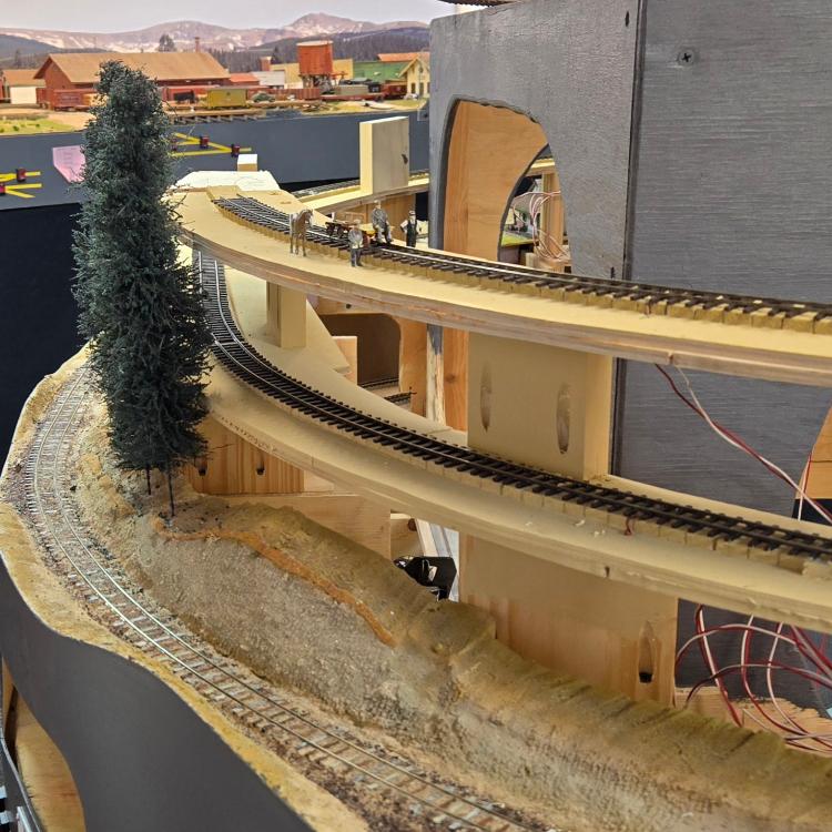 Do I like Ridgeway spark arrestor? I got the chop saw out and cut a bunch of spacers. Like many before me, my plan was to add spacers inside and out, the question being, are they offset, or across from one another? I also got out my Kreg pocket hole jig: this allows me to screw the spacers in from the top. As I test fit the spacers and the roadbed, the notion that spacers on the inside alone would be sufficient emerged. Using the clearance gauge, I set the spacer locations and find them in place with the Kreg screws: they are very solid! I then placed and attached the roadbed, using 2 screws for each spacers block. The result is a very solid assembly that will be more than adequate to support a train. ![]() The parts are now coming together. You can see how herniating the lowest circuit of the helix allows trains to be completely visible. Trees will cover the next two circuits, and the Climax spur will cantilever from the top with a fascia/ valence hiding lights. ![]() The outcome is that operators will be able to see their trains most of the time while they transit the helix. This should improve 'playability' and reduce speed ups and runaways due to the visibility.
