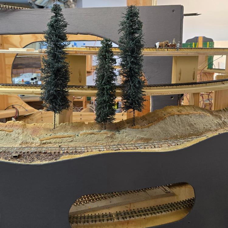 I think what Keith is describing is a "low fore drop", as opposed to a "backdrop". The trees will just be high enough to mostly hide the trains, but still allow access to derailed or stalled equipment from above. But that's going to be a whole lot of trees . . .