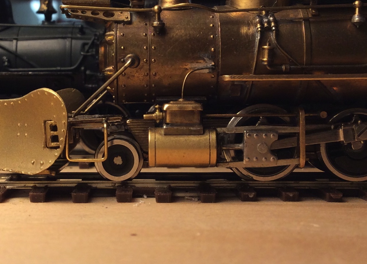 Keith pointed out a while back, correctly, I might add, that most of my area if interest falls in the last 10 to seven years preceding abandonment of mainline operations. Anyway, here goes... Don't worry at all about the tank resting so close to the end of the frame.you'll be fine with what you have, as long as you can get the cut lever brackets between the back of the cistern and the edge of the end beam. I'm not 100% on dimensions of the rear tank in those (your) days, but in later days, your air tank would be 12" in diameter, 33" or 36" long, and would have a triple valve on it with a small pipe with a controller at the front of the bunker side on the engineers side. In your days, there may not have been a retainer used, so that valve and pipe may not have been present. The air tank may also have been centered, not shifted to the right as it was in later times. There were almost certainly three grabirons at the rear deck (water hatch) around the end and sides, for safety. There were probably marker light brackets at the corners. #7, in 1899 still carried DSP&P style cage lamp holders in the corners so that has been around forever. I'm sure there were grabirons on both sides of the end beam as well. Not sure about rerail frogs... Also, don't forget the water valves at the front of the water legs, at the front of the tool boxes that wouldn't have those wind screens yet. Mike |