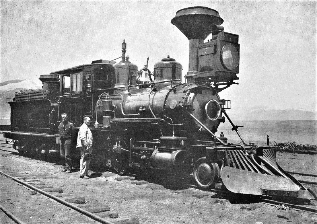 The answer to the reason for the rear platform probably goes back to the old days when they carried a large air tank there. That big tank was replaced by the boiler top mounted tanks in the early 1900's. The small tank used later on the rear of the cistern was the reservoir for the tender brakes, usually found underneath as on D&RGW equipment. As the tender frames were rebuilt, most of the rear floor decks disappeared. #60 is a very notable exception. Following is a photo of "Old No. 7" which shows the old train air tank on the rear platform, with the smaller tender reservoir above it. I put the triple valve on it because I think there was one on there in the 1890's in DL&G days.