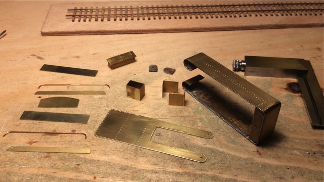 Well, haven't had much modeling time lately what with needing to make six 1:1 scale barn doors before winter comes on, and endless other things. But, last night I finally got around to soldering up the new superstructure for my attempt at an intermediate tender. Here are the new parts that have been patiently waiting the last two months, along with the original PFM cistern shell and toolbox: